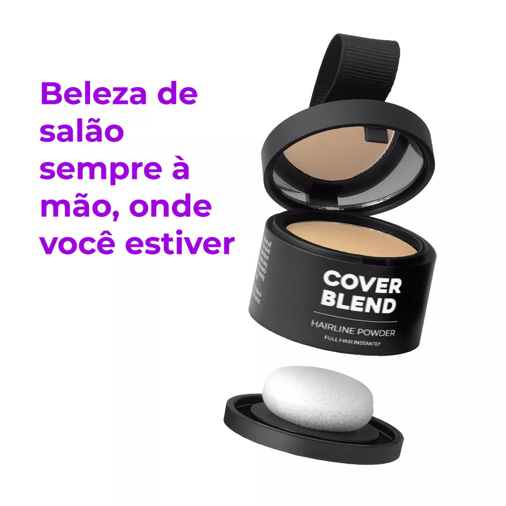 O CoverBlend é um corretivo capilar em pó com esponja aplicadora que se funde ao seu cabelo de forma tão natural que ninguém vai perceber que você está usando. Funciona em loiras, morenas, ruivas e grisalhas, e o melhor: não sai com suor, chuva ou no travesseiro branco.